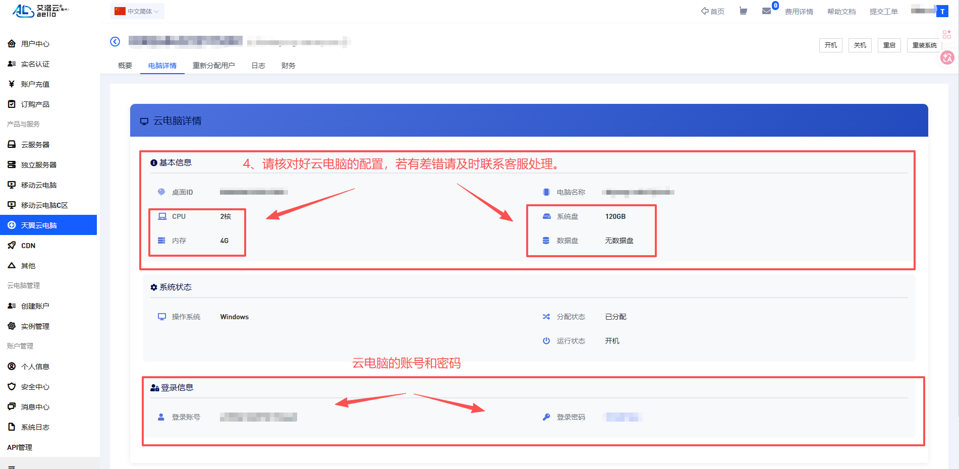 4、请核对好云电脑的配置,若有差错请及时联系客服处理。